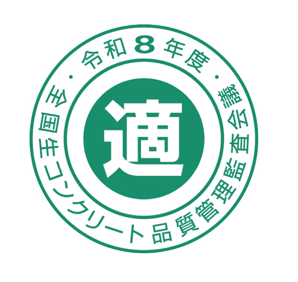 令和7年度の全国統一品質管理監査に合格した工場が、全国生コンクリート品質管理監査会議の発行する「令和8年度マル適マーク(有効期間:令和8(2026)年4月1日~令和9(2027)年3月31日)」の使用を承認されております。